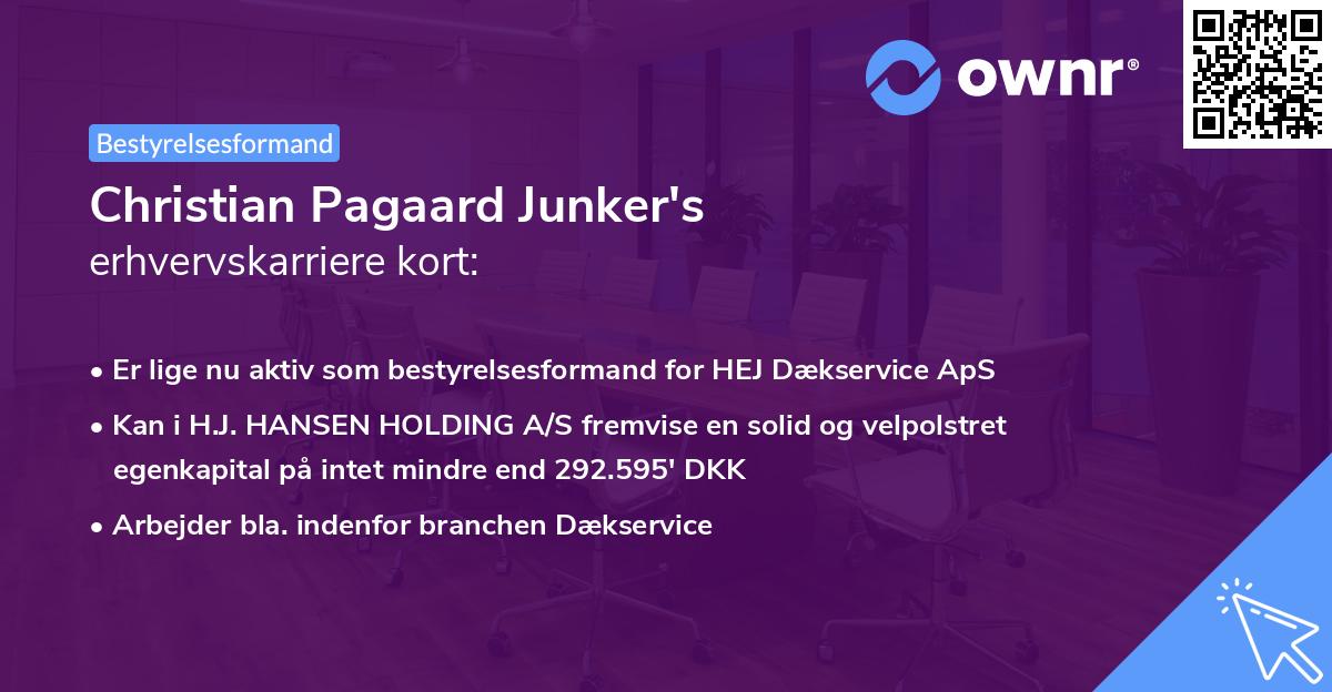 Christian Pagaard Junker har haft flere bestyrelsesposter gennem sin karriere, og har bla. været med til at godkende: