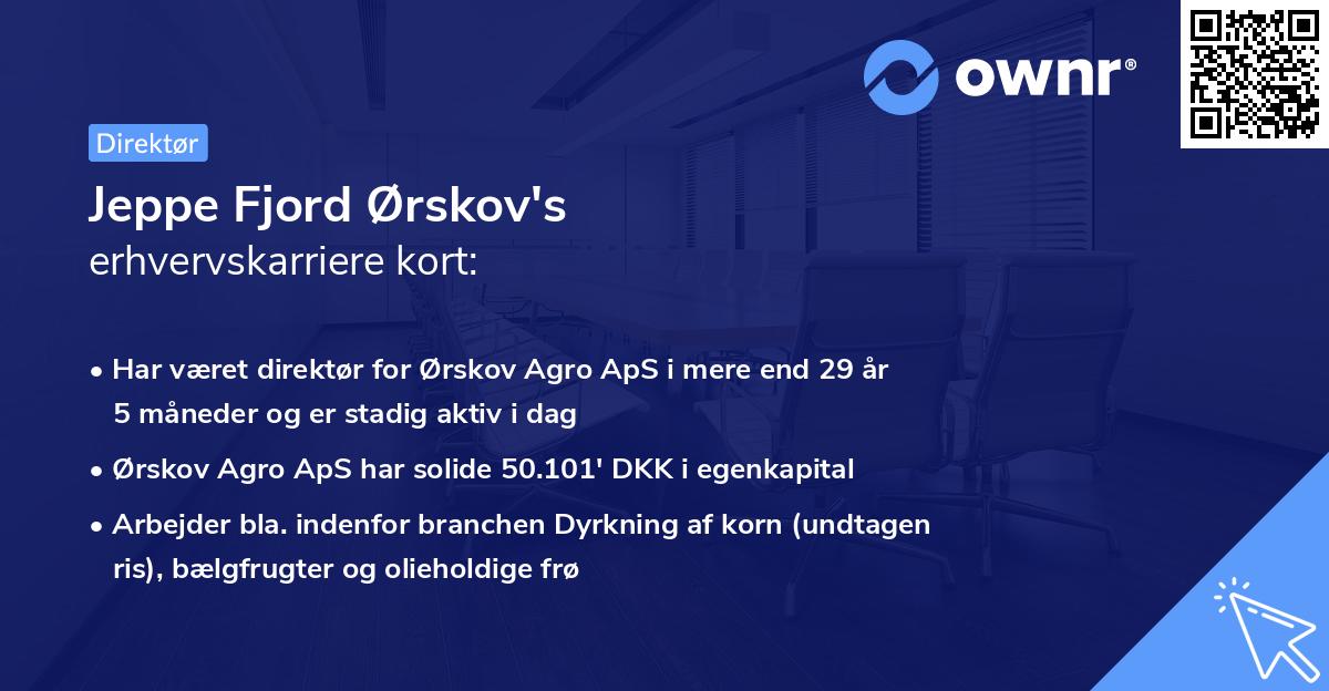 Karrieren som erhvervsleder startede for alvor en dag i 1992 ved I/S ØRSKOV V/OLE OG JEPPE FJORD ØRSKOV med titlen som Ejer og Stifter. Det var sammen med business-partneren Ole Ørskov at Jeppe Fjord Ørskov stiftede I/S ØRSKOV V/OLE OG JEPPE FJORD ØRSKOV den dag i juli 1992. Rollen som Ejer og Stifter har Jeppe nu bestreddet i 33 år 8 måneder, og er stadig aktiv i samme rolle i dag.