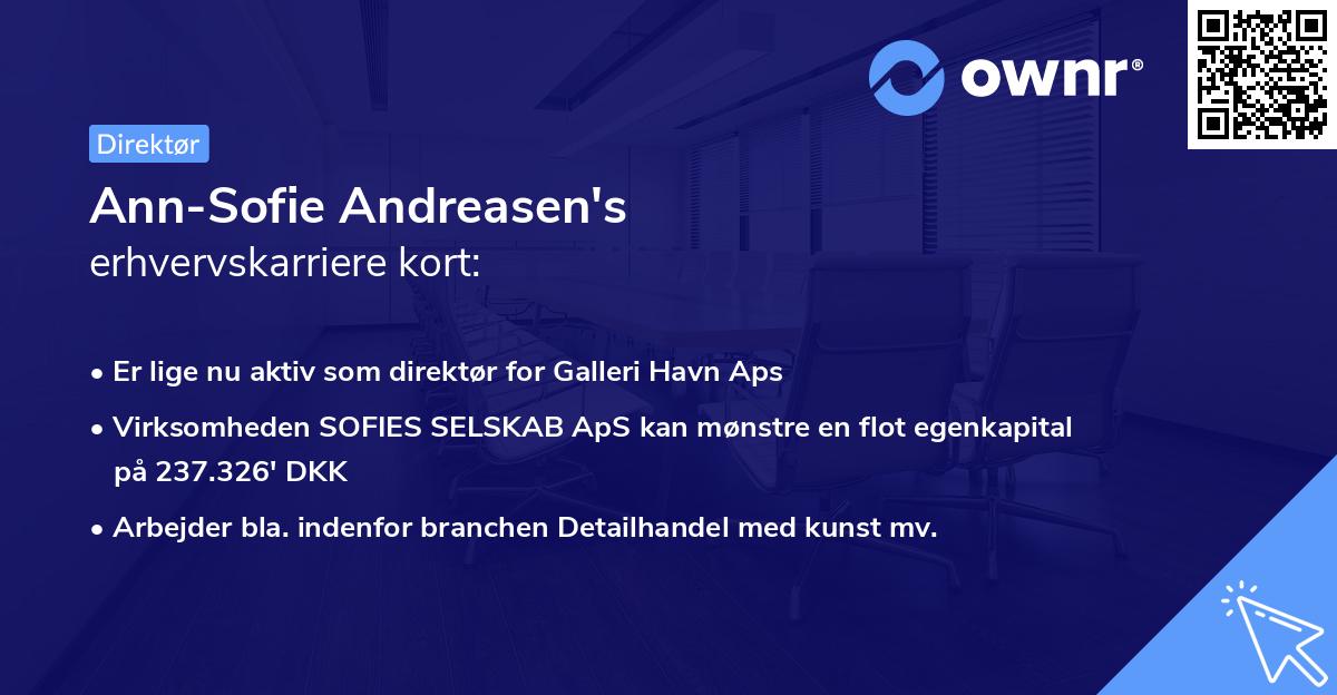 Ann-Sofie har efterfølgende været involveret i flere andre danske virksomheder. Har indtil videre haft en erhvervskarriere på mere end 12 år 5 måneder.
