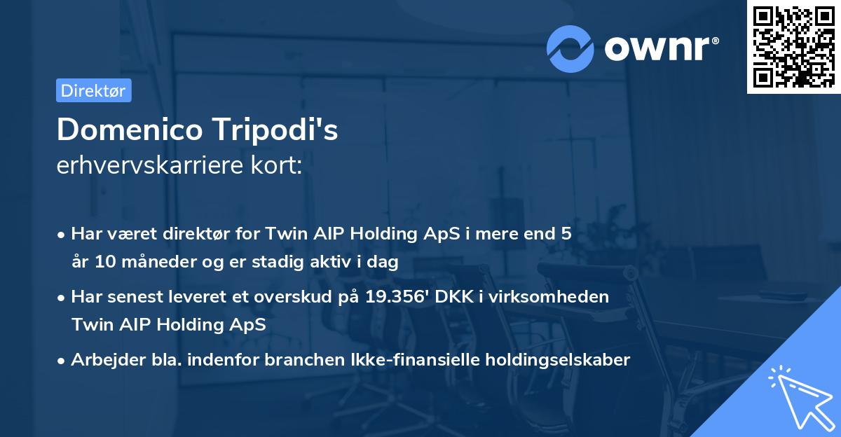 Domenico har været inde over flere virksomheder og kan betegnes som en arbejdsom serieiværksætter. Karrieren har indtil nu varet i mere end 7 år 10 måneder.